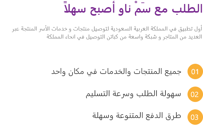 سم ناو أول منصة سعودية تدير وتنظم العلاقة التعاقدية للأسر المنتجة والحرفيين مع مندوبين التوصيل والمستهلك النهائي، مع ضمان حقوق جميع الأطراف, نسعى إلى توفير بيئة مبتكرة تساعد رواد الأعمال المنزلية والحرفيين في تطوير أعمالهم وتحقيق نجاح مستدام